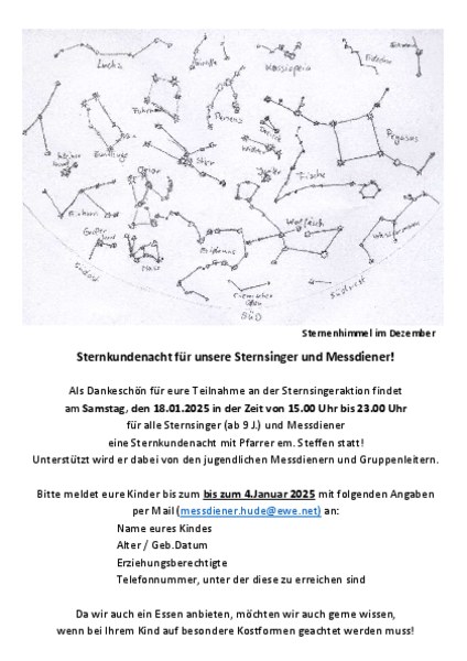 Termine für die Sternsingeraktion 2026